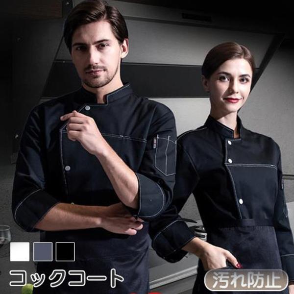 コックコート 飲食店 コック服 ユニフォーム シェフ 7分袖 男女兼用 調理士 コックジャケット 調理服 仕事着 厨房服 長袖 白 黒 料理人 制服