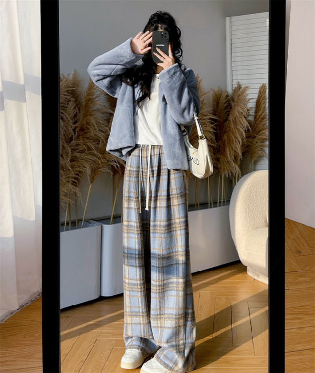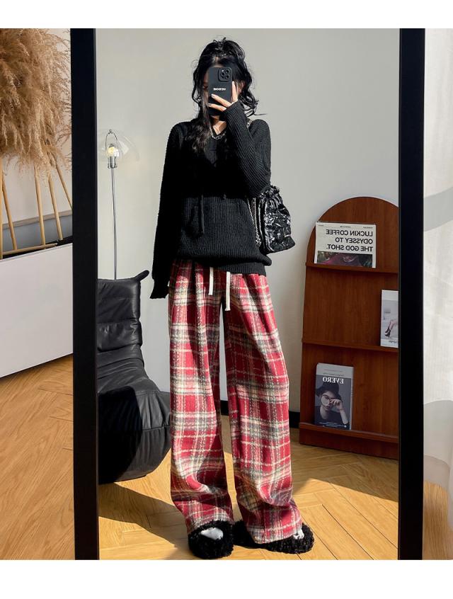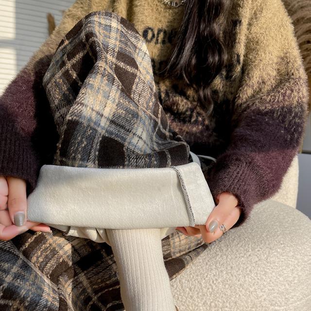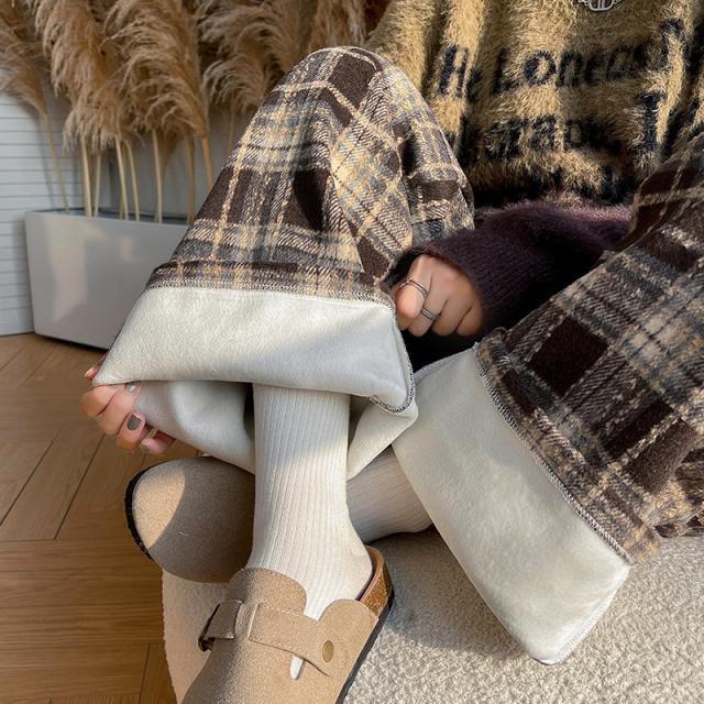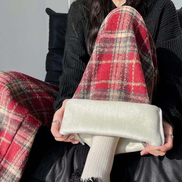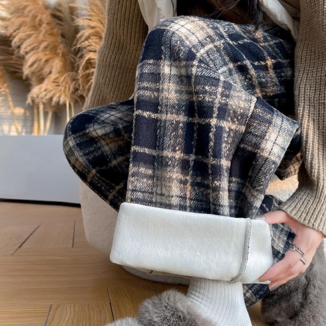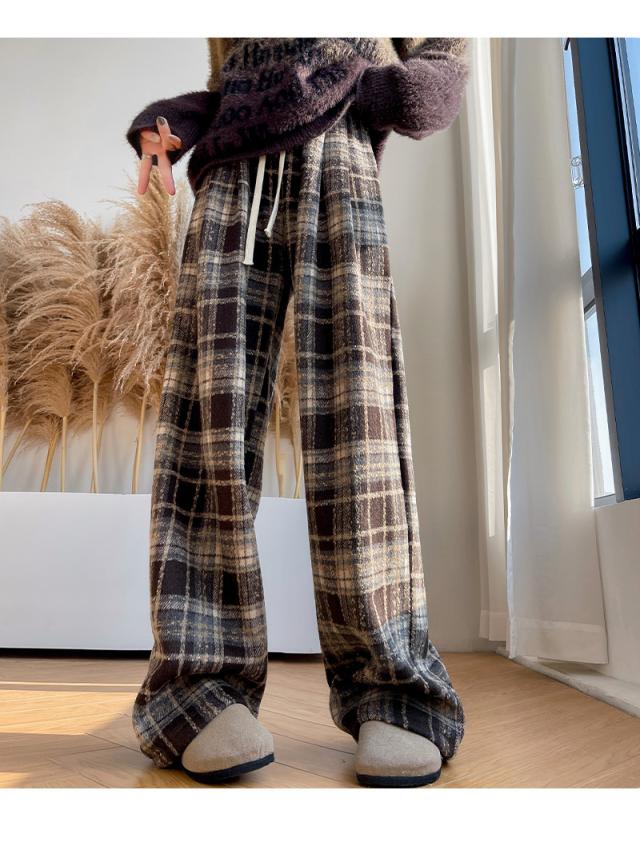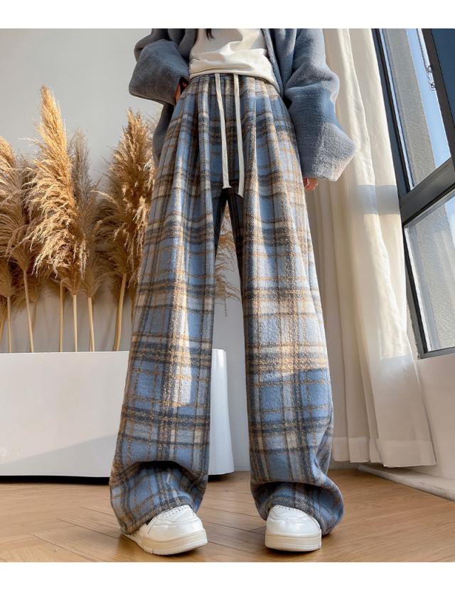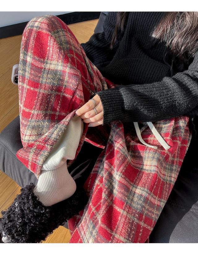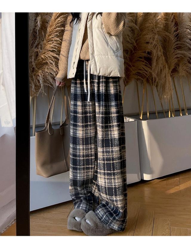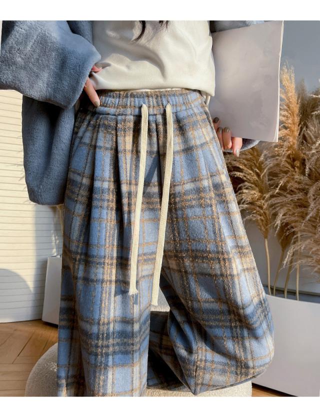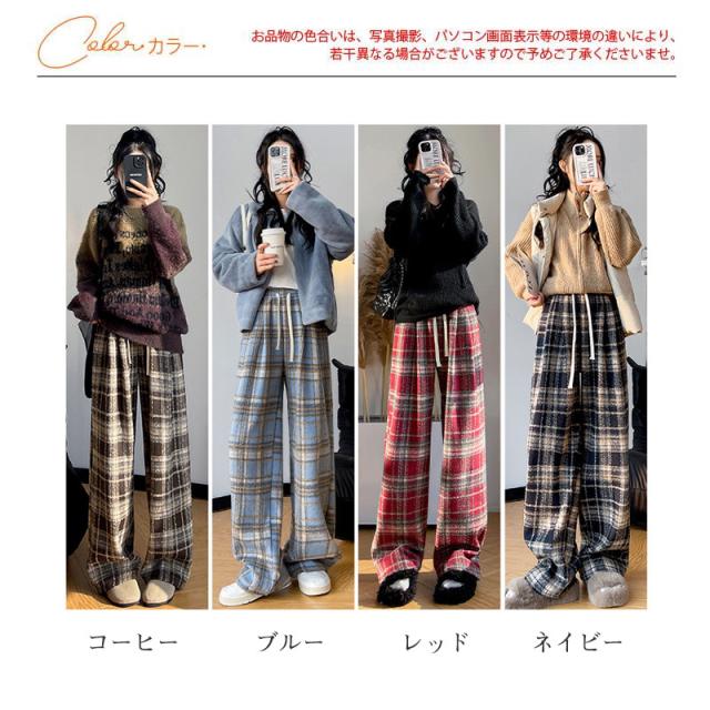 ワイドパンツ レディース 裏起毛 ボトムス チェック柄 バギーパンツ イージーパンツ カジュアル 保温 防寒 アウトドア クリスマス プレゼント 秋冬