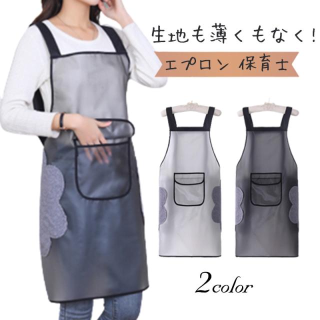 半額セール エプロン ワンピース 無地 レディース メンズ キッチン 保育士 ポケット付き カフェ シンプル 料理 防水 部屋着 食器洗い おしゃれ