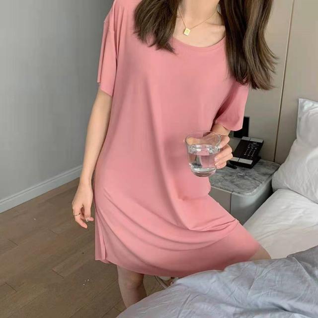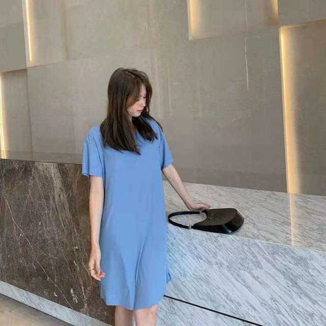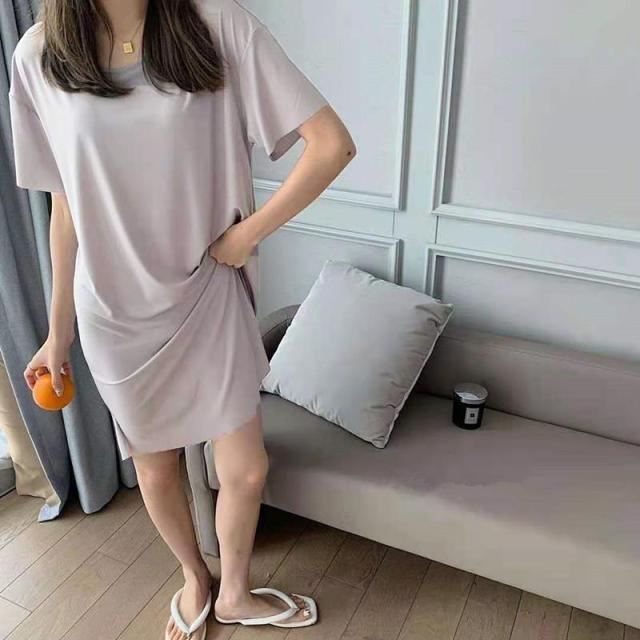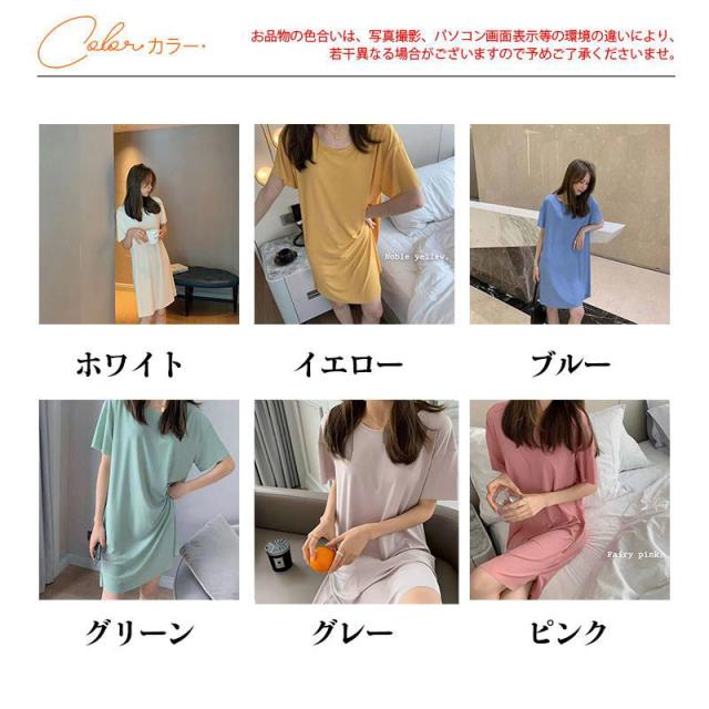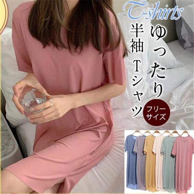 ワンピース レディース 半袖 チュニック トップス ロングTシャツ 無地 カジュアル カットソー ゆったり 薄手 ルームウェア 部屋着 ひんやり 冷感 春夏