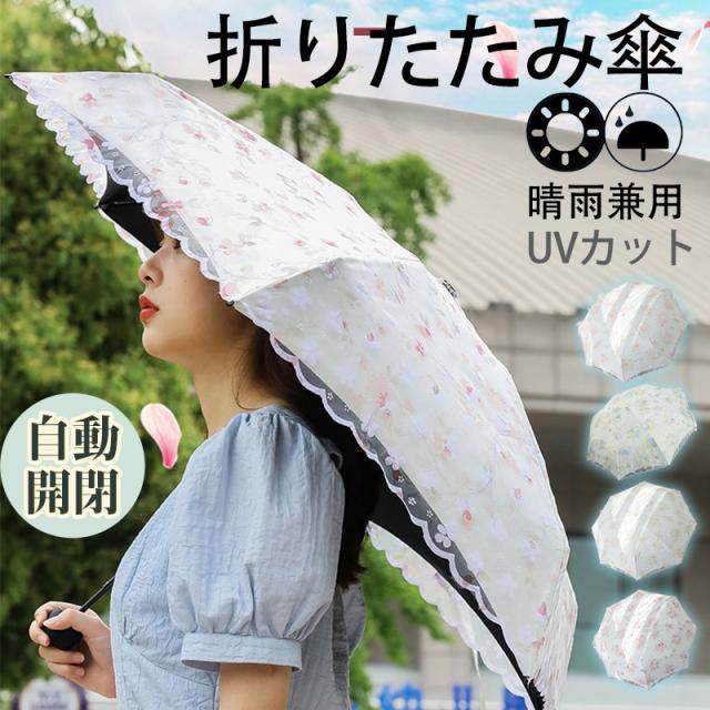 日傘 レディース 折りたたみ レース 自動開閉 晴雨兼用 花柄 きれいめ 超軽量 紫外線対策 カジュアル コスプレ プレゼント おしゃれ 可愛い 春夏