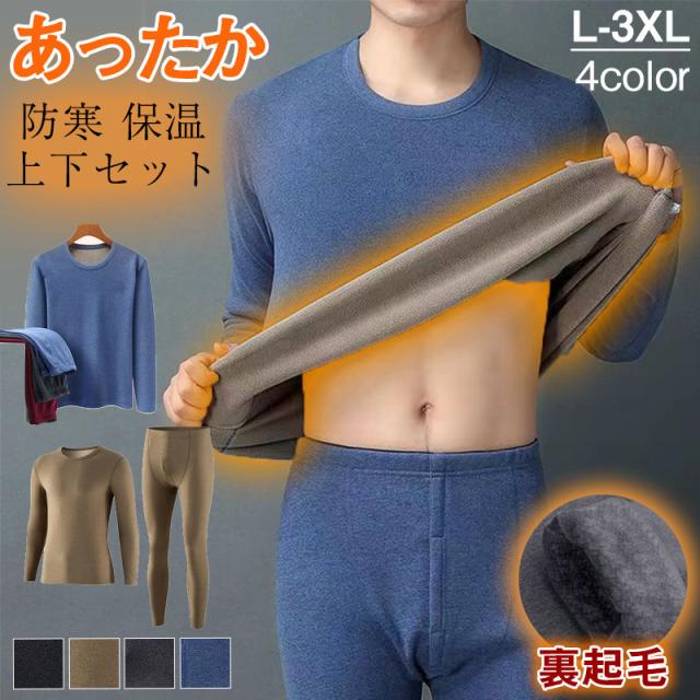 インナー メンズ 裏起毛 上下セット ルームウェア シンプル トップス ボトムス カジュアル 防寒 保温 暖かい おしゃれ 誕生日 秋冬 プレゼント