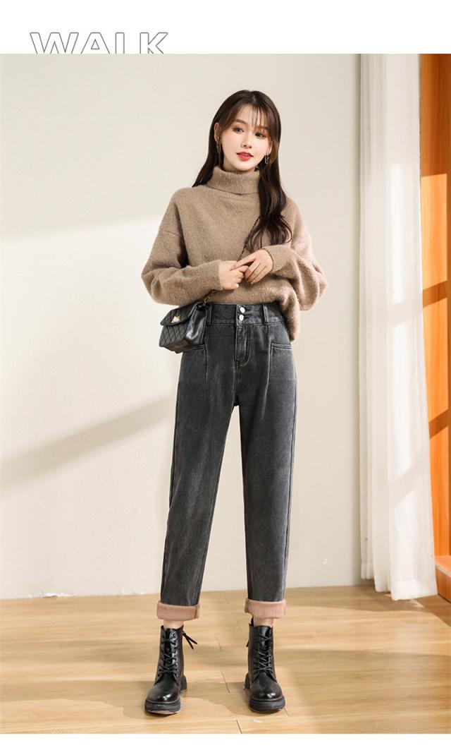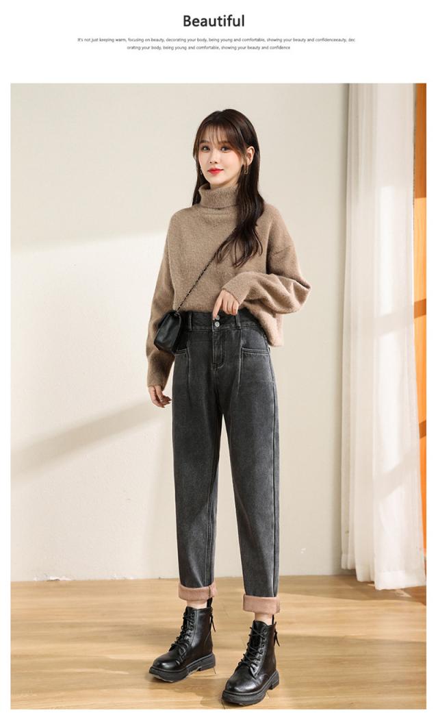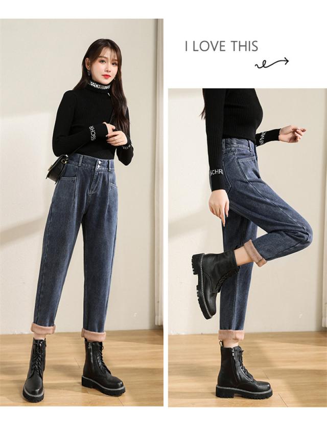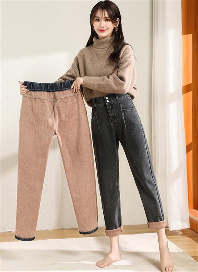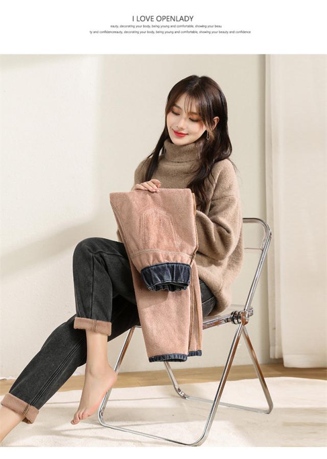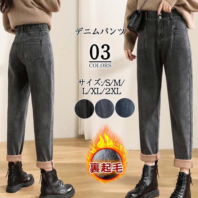 デニムパンツ レディース 裏起毛 ジーンズ ハイウエスト ワイドパンツ ロング ボトムス カジュアル 保温 防寒 アウトドア 母の日 プレゼント 旅行