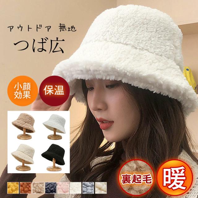 バケットハット レディース サファリハット 帽子 裏起毛 つば広 無地 シンプル カジュアル もこもこ アウトドア 保温 防寒 可愛い おしゃれ 秋冬