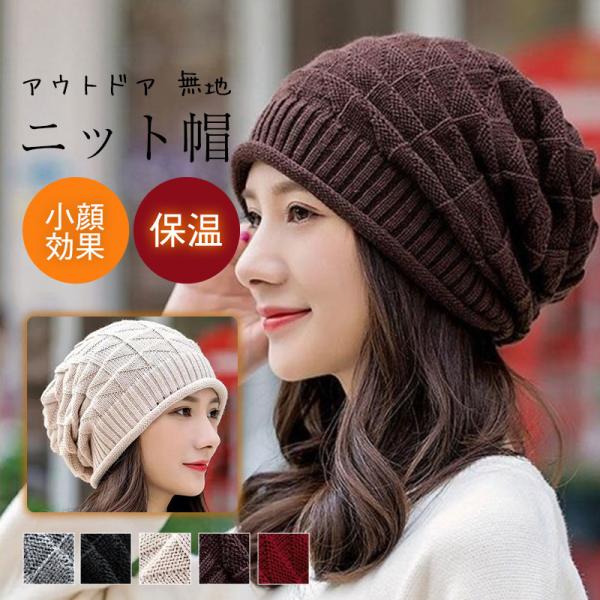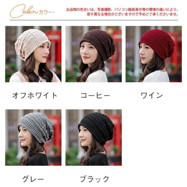 ニット帽 レディース 帽子 ニット キャップ ハット 無地 大きめ シンプル 小顔効果 カジュアル アウトドア 秋冬 保温 防寒