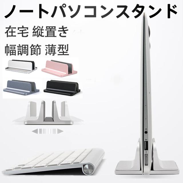 ノートパソコンスタンド コンパクト PCスタンド パソコン 在宅 縦置き シンプル スタンド 収納 アルミ 机上 おしゃれ タブレット 幅調節 薄型