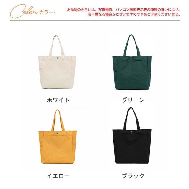 商品詳細カラー:/ホワイト/グリーン/イエロー/ブラックサイズ:/ワンサイズ---------■商品説明オールシーズン使えるシンプルトートバッグくすみカラーで落ち着いた色合いでとっても可愛い♪必要なアイテムをしっかり収納でき、旅行時にも大いに活躍します。しっかりの素材で使い勝手がよく、実用的なバッグとしてぴったりなアイテムです。---------■商品仕様◆ワンサイズ 約(上部43cm、底部34cm)*36cm*12cm◆素材:カンバス、その他---------■ご注意●生産の関係により写真と色、柄が若干異なる場合があります。●生産時期によりサイズ表にご案内の数字に誤差があります。また商品毎に個体差がございます。ご了承お願いいたします。---------■キーワードトートバッグ レディース 軽量 ランチバッグ スマホバッグ 大容量 カジュアル アウトドア シンプル 通勤 通学 おしゃれ 可愛い ショルダーバッグ 母の日 誕生日 プレゼント 丈夫 旅行 出張 入学式 卒業式 卒園式 パーティー コーデ ママバッグ マザーズバッグ