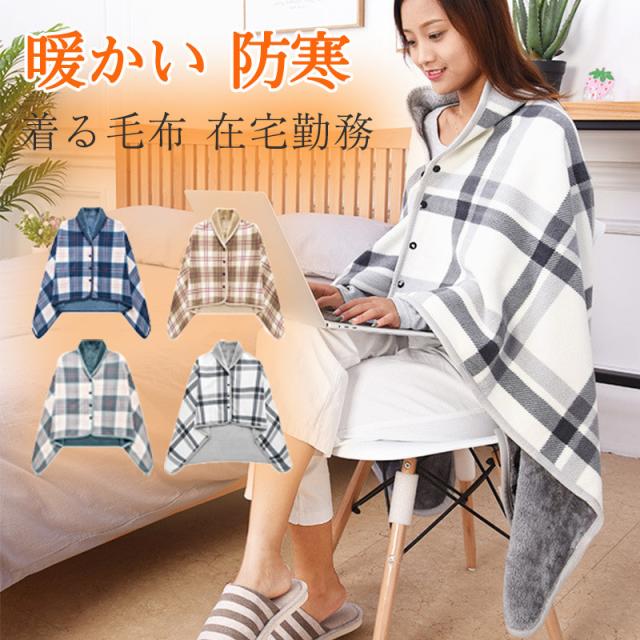着る毛布 ルームウェア ロング チェック柄 毛布 厚手 パジャマ ネグリジェ 部屋着 暖かい 防寒 保温 オフィス 在宅勤務 カジュアル おしゃれ