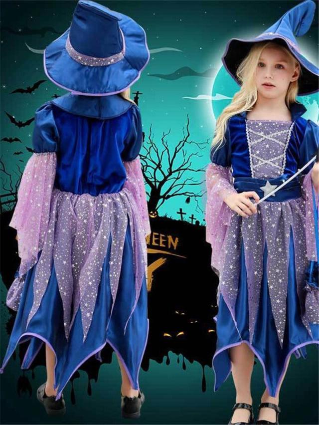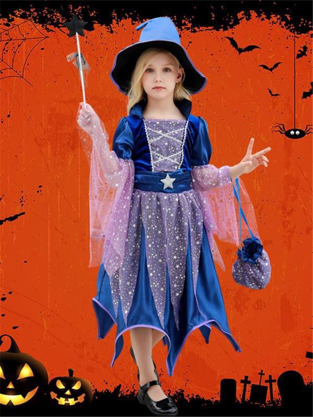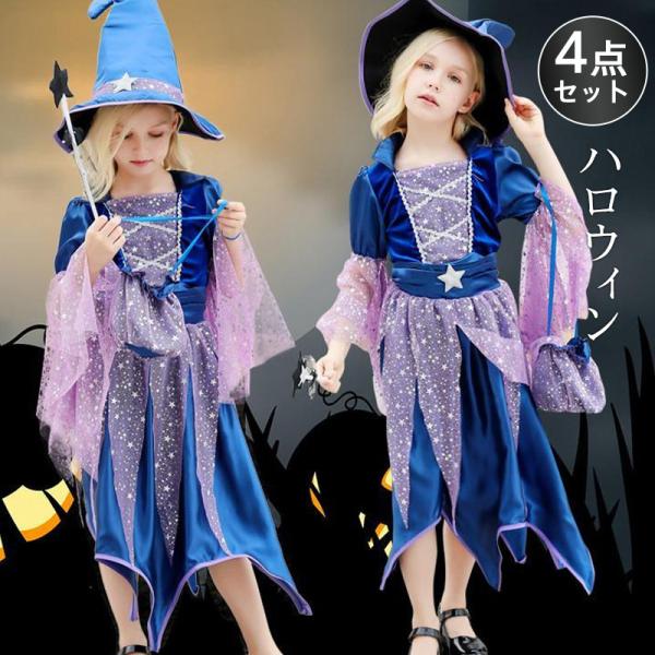 ハロウィン コスプレ 4点セット 衣装 子供 ドレス 女の子 魔法使い 仮装 魔女 コスチューム ハロウィン仮装 キッズ 可愛い 演出 舞台 忘年会