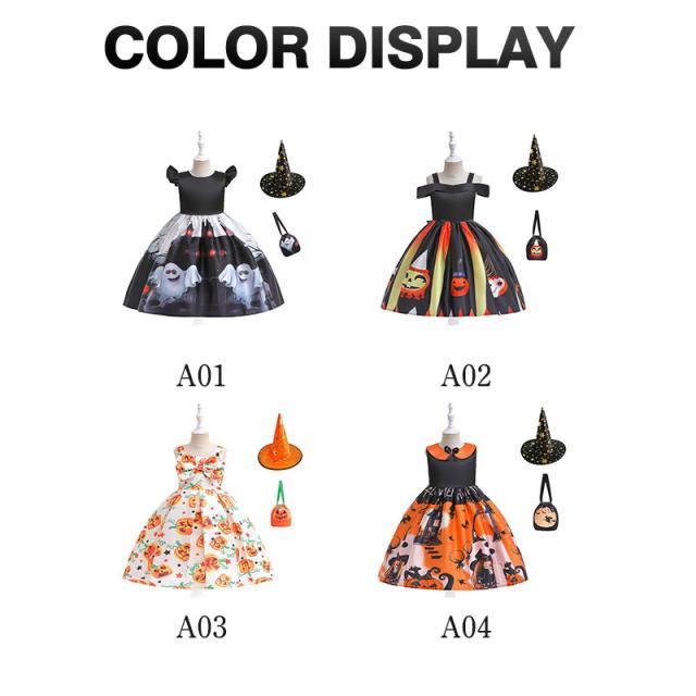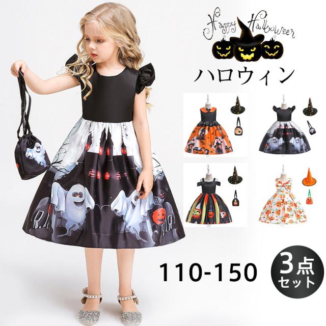 ハロウィン コスプレ 3点セット 衣装 子供 ドレス 女の子 ウィッチ 仮装 魔女 コスチューム ハロウィン仮装 キッズ 可愛い 演出 舞台 撮影用