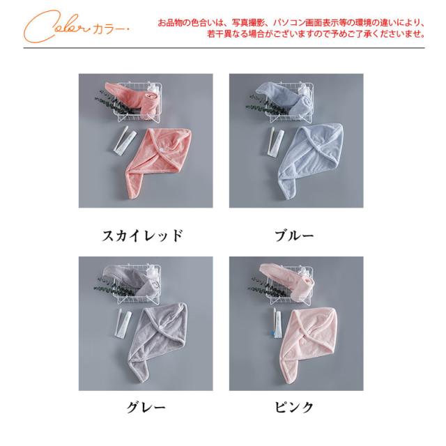 商品詳細カラー:/スカイレッド/ブルー/グレー/ピンクサイズ:/ワンサイズ---------■商品説明肌触りが柔らかく、髪の毛にも優しいふわふわの極厚タオル。吸水力の高い素材なので、濡れた髪の毛からぐんぐん水分を吸収してくれます。お風呂上がり使いはもちろん、髪をまとまてアップにでき、洗顔やお化粧の時にも役立ちます。---------■商品仕様◆ワンサイズ約25*65cm◆素材:ポリエステル、その他---------■ご注意●生産の関係により写真と色、柄が若干異なる場合があります。●生産時期によりサイズ表にご案内の数字に誤差があります。また商品毎に個体差がございます。ご了承お願いいたします。---------■キーワードタオルキャップ ヘアキャップ ヘアタオル ヘアドライ ヘアドライキャップ カジュアル 速乾 吸水 柔らかい おしゃれ 可愛い お風呂 水泳 プール 海水浴 温泉 旅行 母の日 プレゼント 誕生日 ギフト スイミング コンフォート リラックス 便利 シャワー 20代 30代 40代 50代