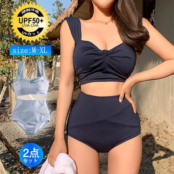 水着 レディース 2点セット ノンワイヤー 水着セット 体型カバー ビキニ ハイウエスト 韓国風 カジュアル セクシー 海水浴 誕生日 ギフト ビーチ