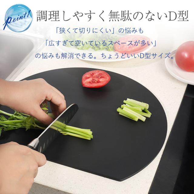 まな板 丸い 丸いまな板 耐熱エラストマー 食洗機対応 抗菌 耐熱 ブラック D型 キッチン 多機能 ノンスリップ おしゃれ シンプル 家庭用 薄型
