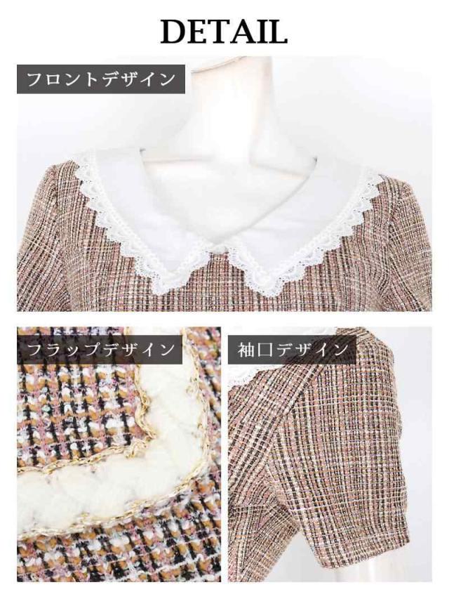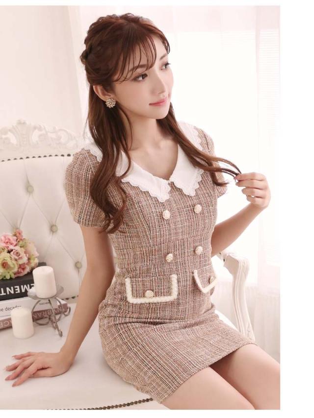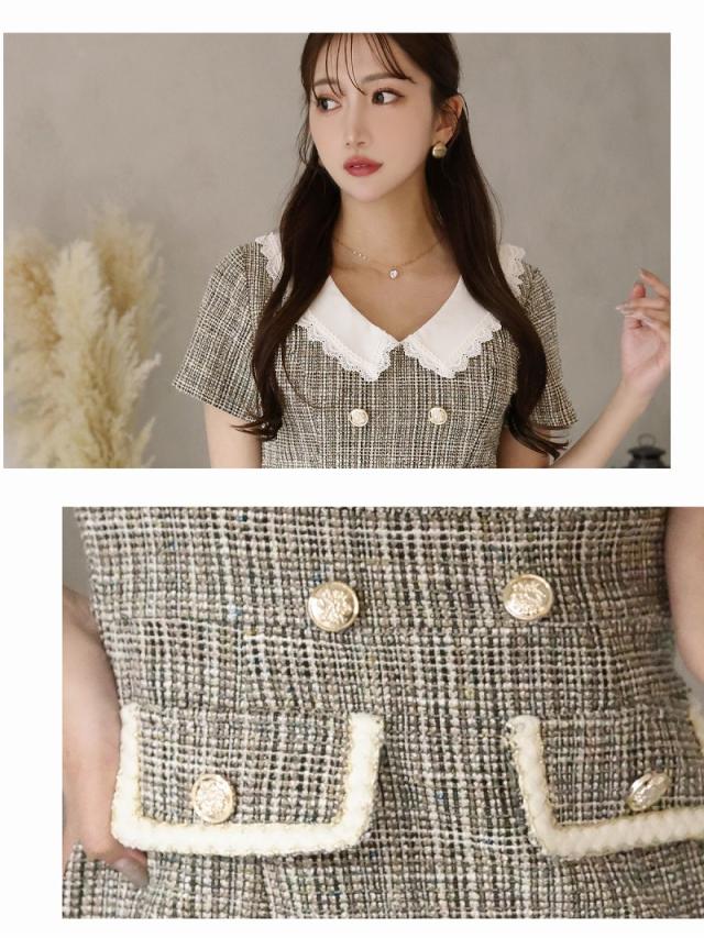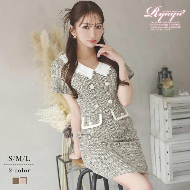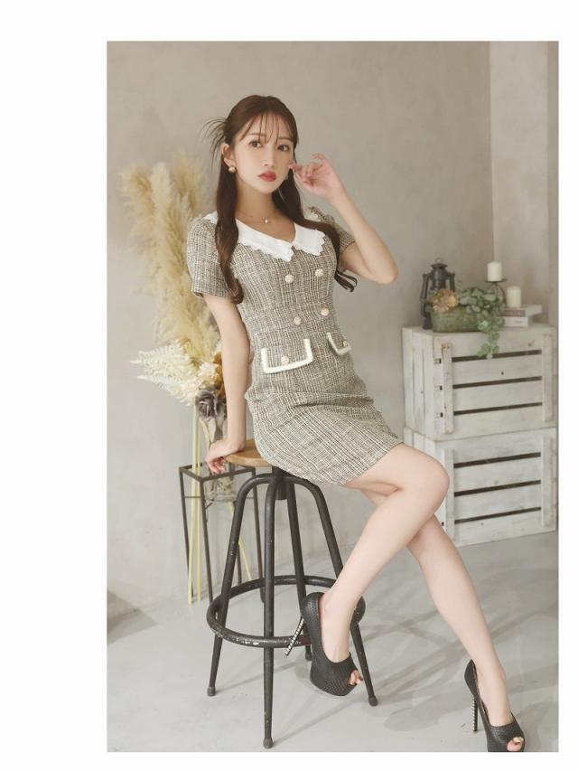 キャバワンピース Ryuyu 韓国風 ツイード ツィードワンピース 袖付き 韓国風ワンピース キャバ ワンピース ワンピ キャ
