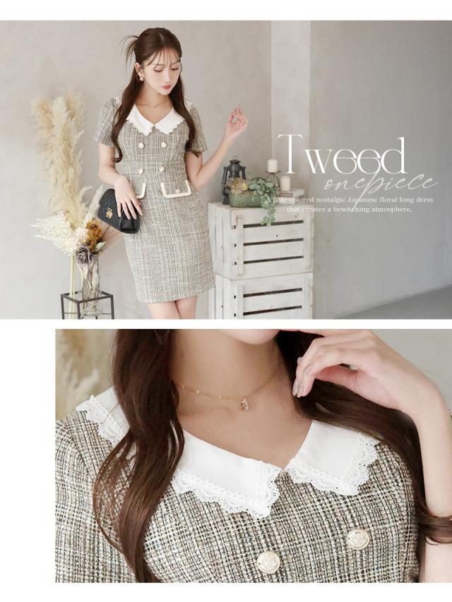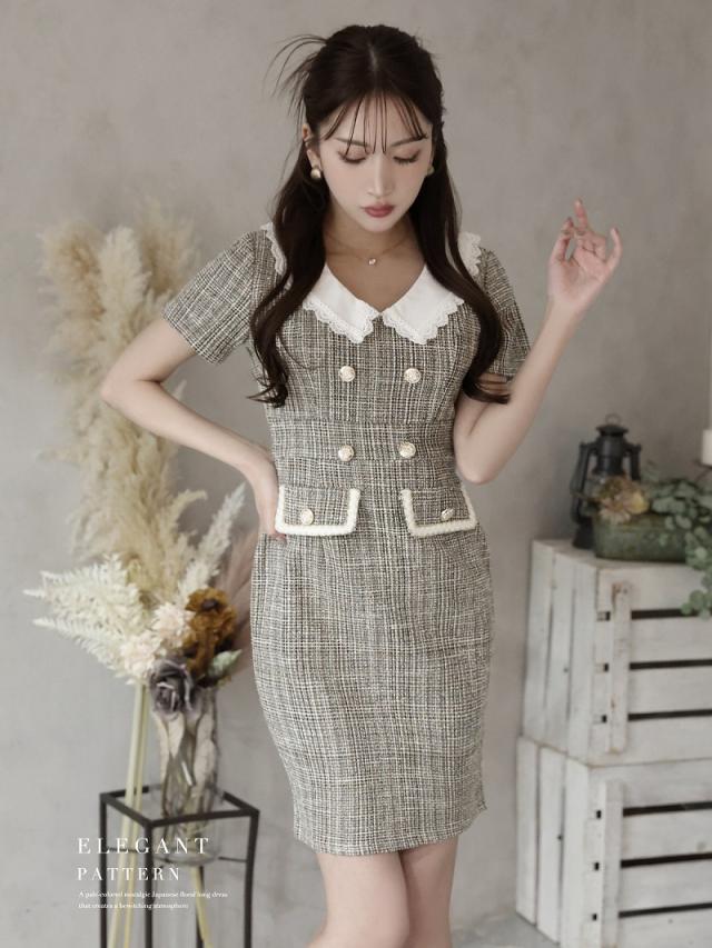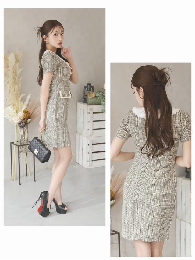 ☆ミックスツイード生地が大人可愛いキャバワンピース。