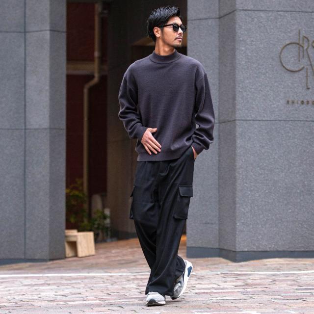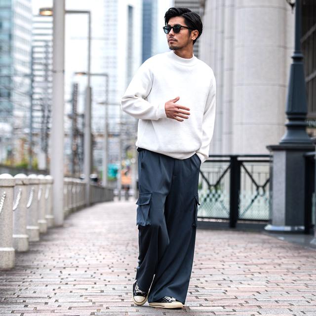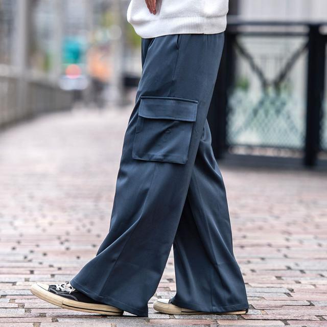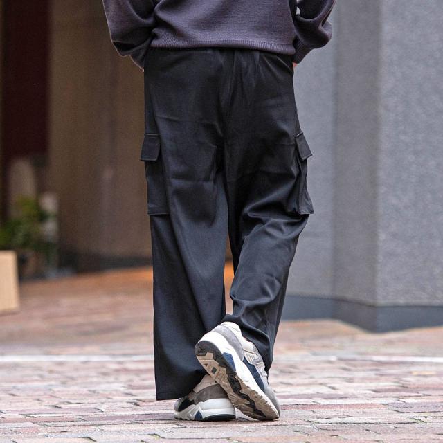 無駄なデザインは省きシンプルに仕立てた大人が着こなせるワイドカーゴパンツ。