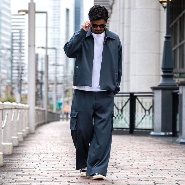 同素材の「ジップジャケット」と合わせたセットアップはもちろん、単品でもお使いいただけます。