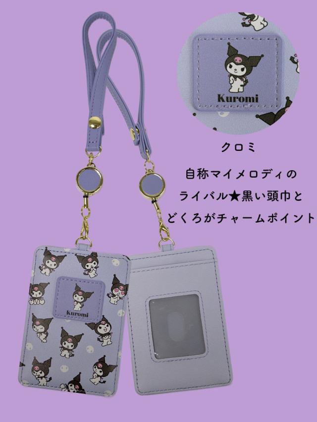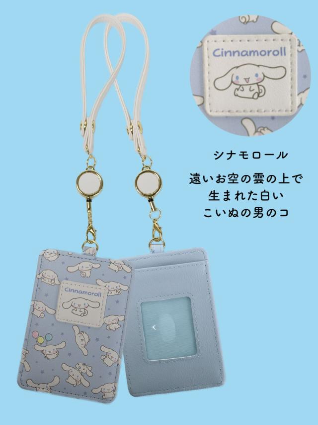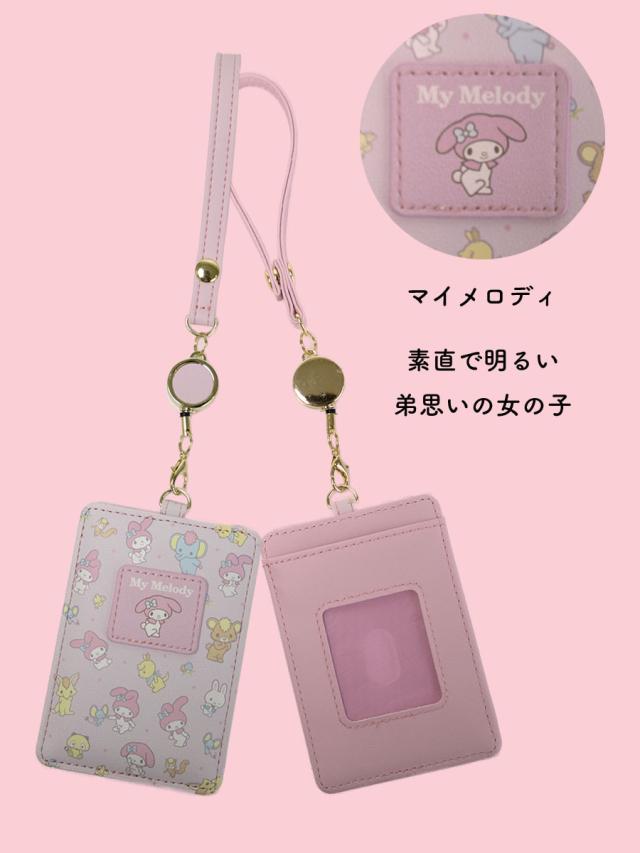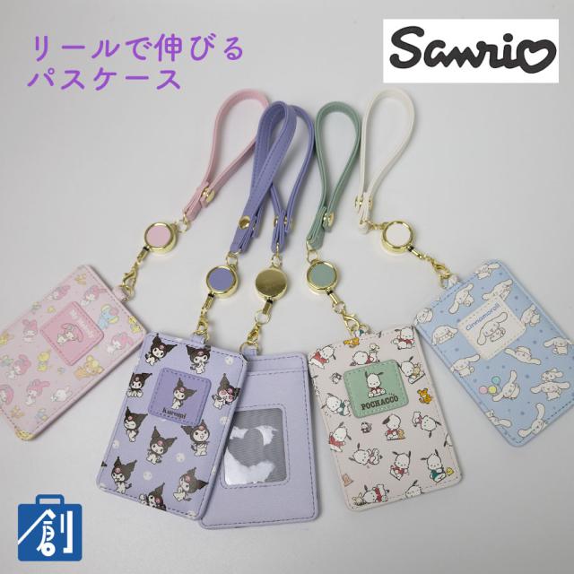 サンリオ パスケース リール付き レディース ストラップ ICカード 定期入れ キャラクター キッズ 女の子 女子 小学生 中学生 高校生 通勤 通学 おしゃれ かわいい 合皮リールパスケース 紫 緑 青 ピンク ブルー グリーン パープル SR3810