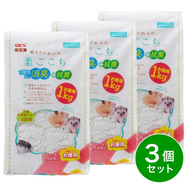 【在庫有・即納】【在庫有・即納】 【まとめ買い】 GEX 柔ごこち お徳用 1kg×3袋 床材 巣材 敷材 ハムスター 小動物 パルプ 白 ホワイトパルプマット ふかふか ふわふわ
