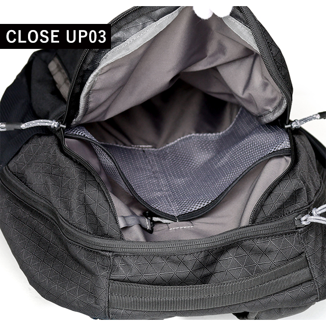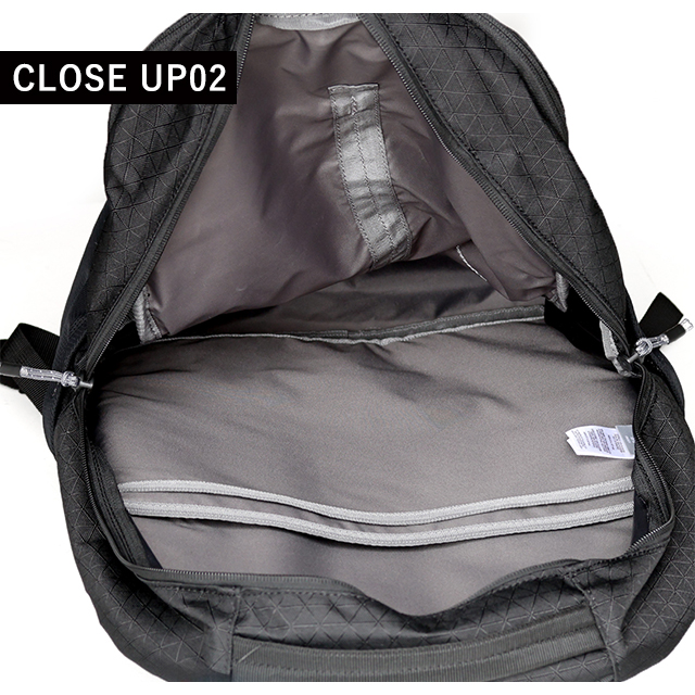 | 仕様 | 容量:26L 外部収納:ファスナーポケット×1、サイドポケット×2 メイン収納:ファスナーポケット×2 内部収納:オープンポケット×2、フリース裏地のタブレットスリーブ×1、メッシュポケット×2 その他:キークリップ |