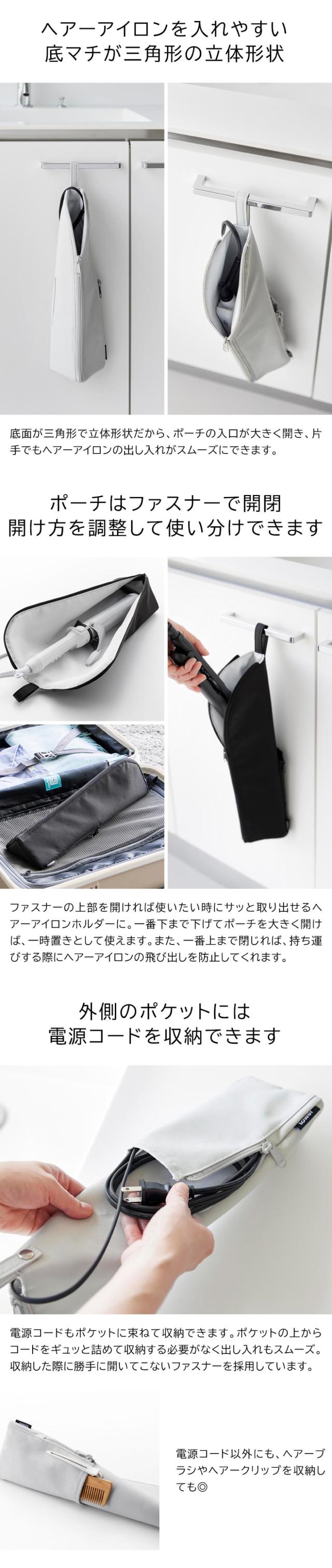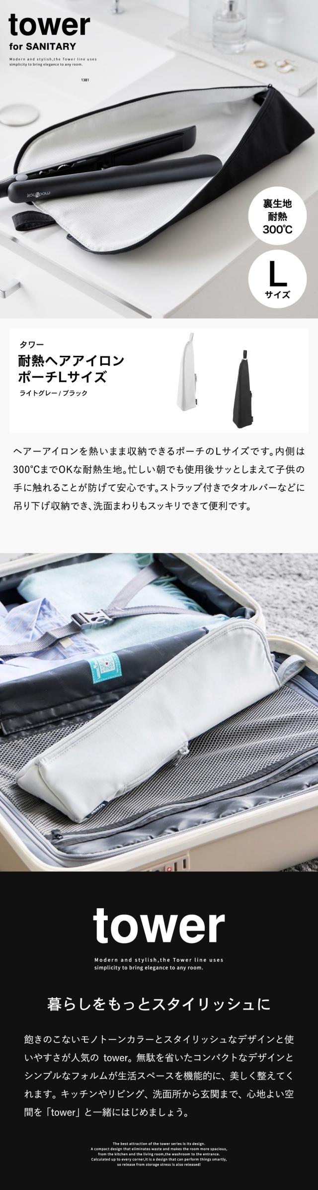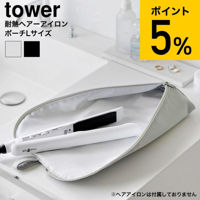 山崎実業 tower 耐熱ヘアーアイロンポーチ タワー L 公式 1383 1384 ライトグレー ブラック 送料無料 ヘアアイロン ケース カールアイロン ストレートアイロン 収納 熱いまま 吊り下げ ストラップ付き