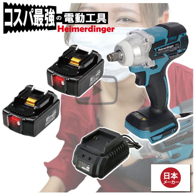 インパクトレンチ セット 防滴 防塵 全て マキタ 互換 本体+6.0Ah電池x2個+充電器 ブラシレス バッテリー 国内正規品 18V Heimerdinger 送料無料