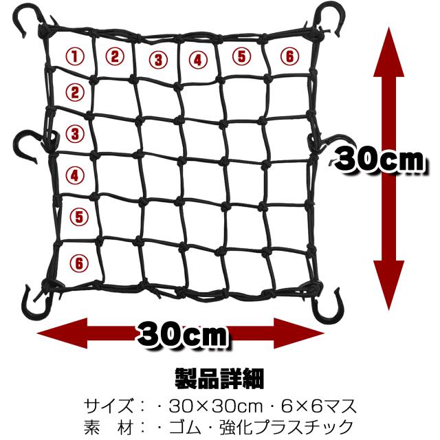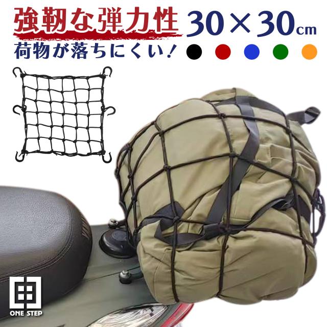 30×30cm ロックストラップ バイク用ネット バイク荷物ネット フック バイク用品 盗難防止 ひったくり 防犯