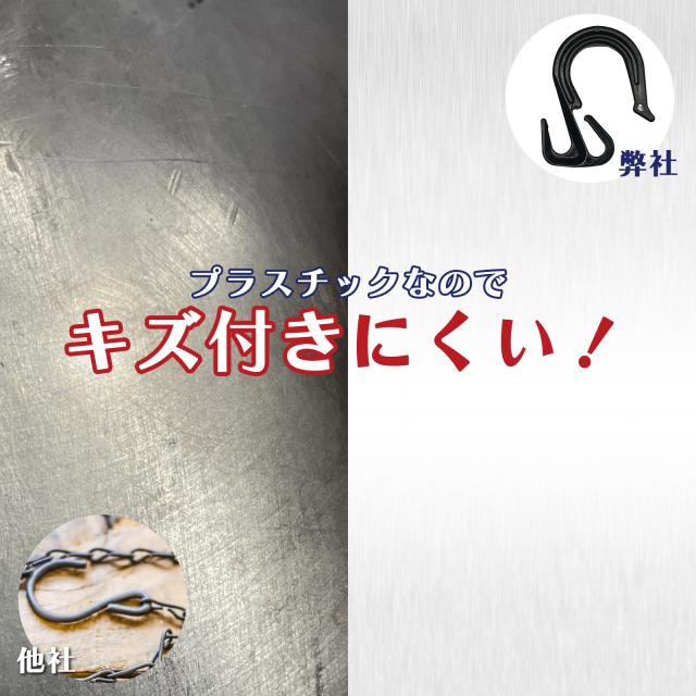 フックに鉄ではなく強化プラスチックを使用している為、誤って車体を傷つける心配もございません。