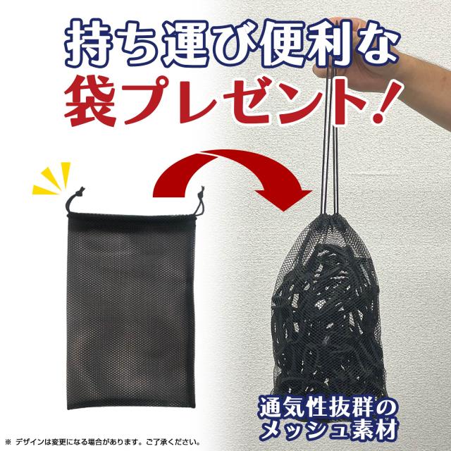 持ち運び用の収納袋がついており、他の荷物と絡まる事はなくコンパクトに収納出来ます。