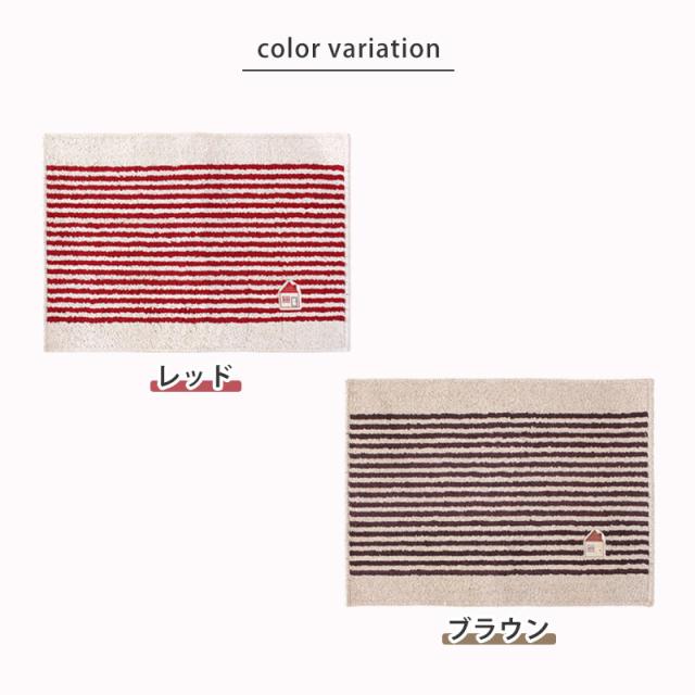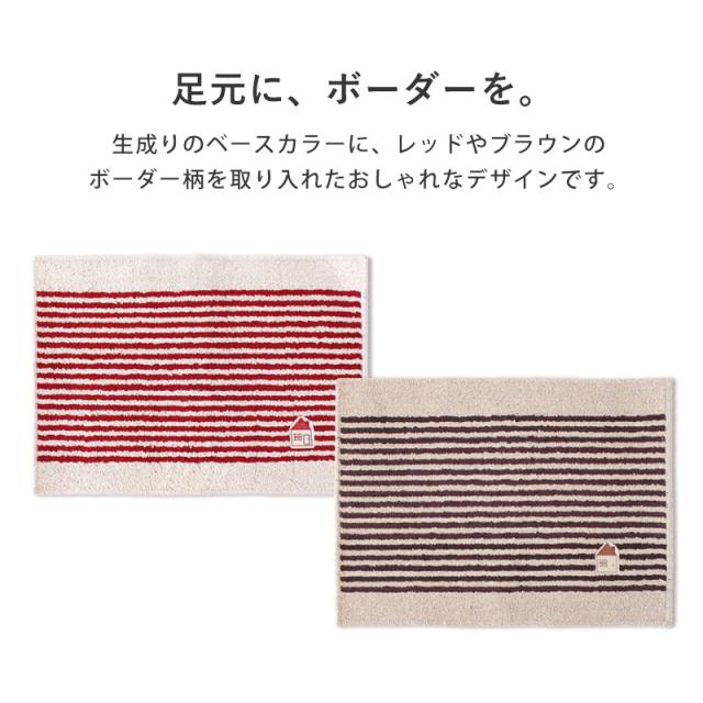 CASA カーサ 洗面マット 45cm × 60cm 丸洗いOK 洗える 洗濯 マット バスマット 脱衣所 玄関 ボーダー かわいい ナチュラル おしゃれ シンプル インテリア しましま 家 おうち 赤 レッド 茶色 ブラウン オカ