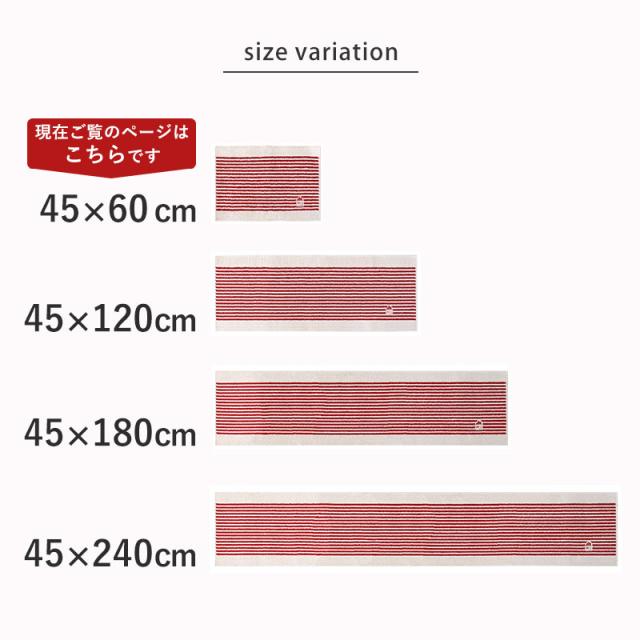 ナチュラルな生成りカラーにレッドとブラウンのボーダーデザインをあしらったマットは、どんなインテリアにも馴染む洗練された仕上がり。