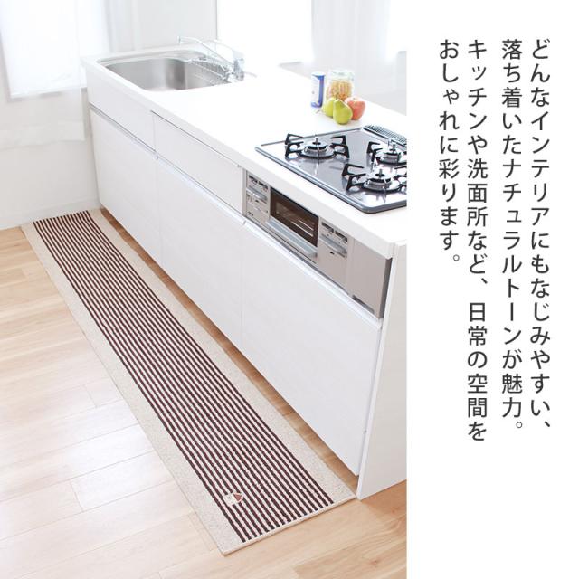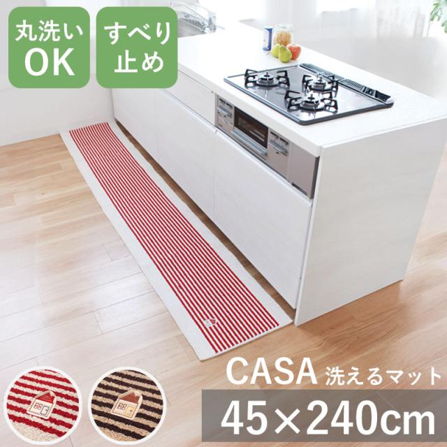CASA カーサ キッチンマット 45cm × 240cm 丸洗いOK 洗える 洗濯 台所 ダイニング キッチンラグ マット ボーダー かわいい ナチュラル おしゃれ シンプル インテリア しましま 家 おうち 赤 レッド 茶色 ブラウン オカ