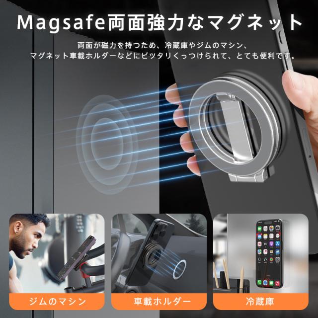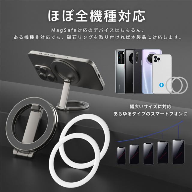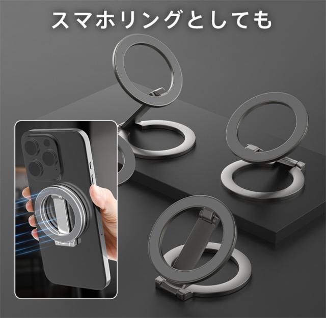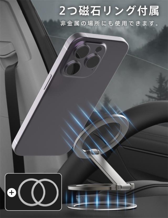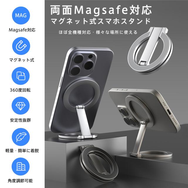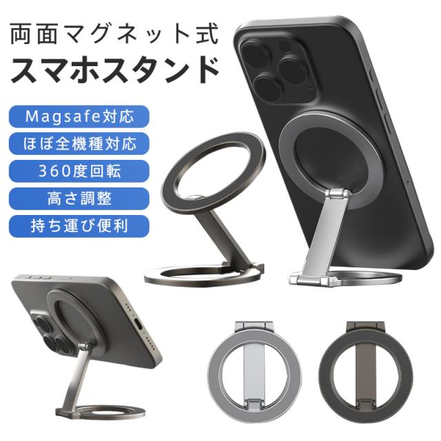 スマホスタンド 卓上 Magsafe 携帯スタンド マグネット式 両面マグネット 強力 横置き 縦置き 折りたたみ 片手操作 コン