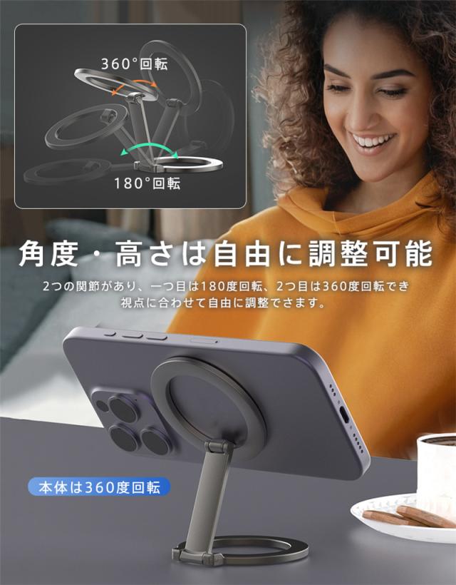 スマホスタンド 卓上 Magsafe 携帯スタンド マグネット式 両面マグネット 強力 横置き 縦置き 折りたたみ 片手操作 コン