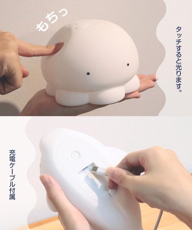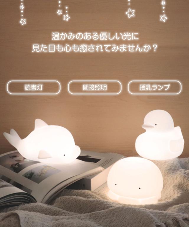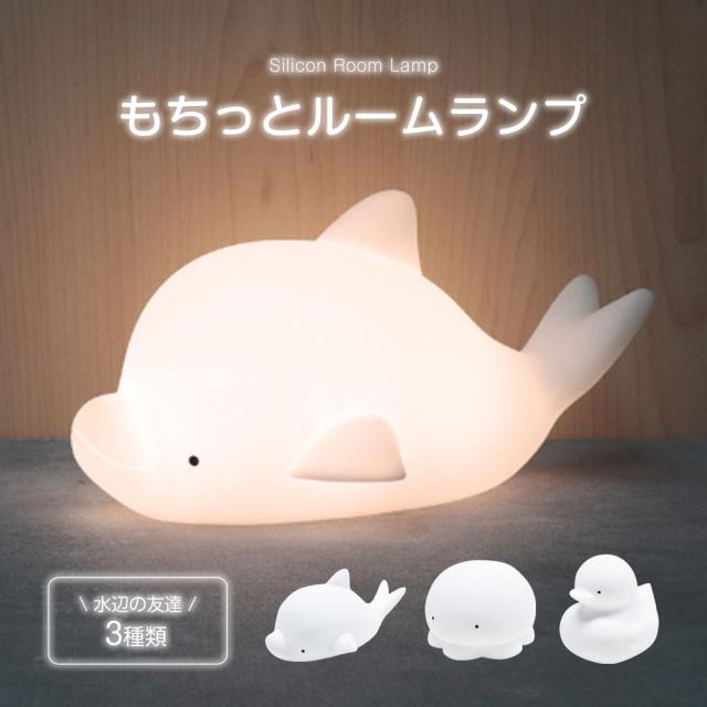ルームランプ 置き型 インテリア テーブルランプ 間接照明 授乳ランプ 枕元 夜間ライト 常夜灯 充電式 電球色 調光 出産祝い かわいい プレゼント ワンタッチ もちっとルームランプ イルカ クラゲ アヒル