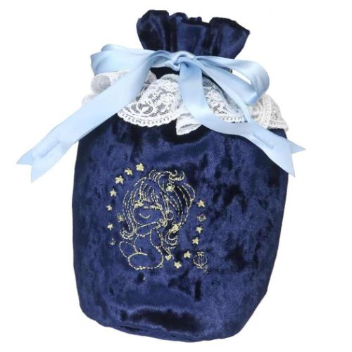 「水森亜土 巾着袋 レース&ベロア巾着 ほし キャラクター グッズ メール便可」