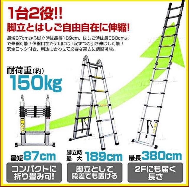 はしご 伸縮 折りたたみ 伸縮はしご はしご兼用脚立 脚立 ハシゴ 梯子 アルミ製 伸縮 1.9m 3.8m 脚立 梯子兼用脚立 ハシゴ兼用脚立