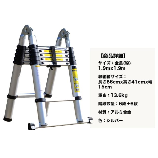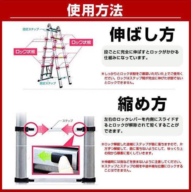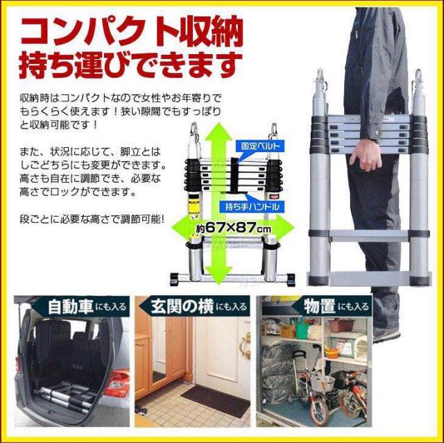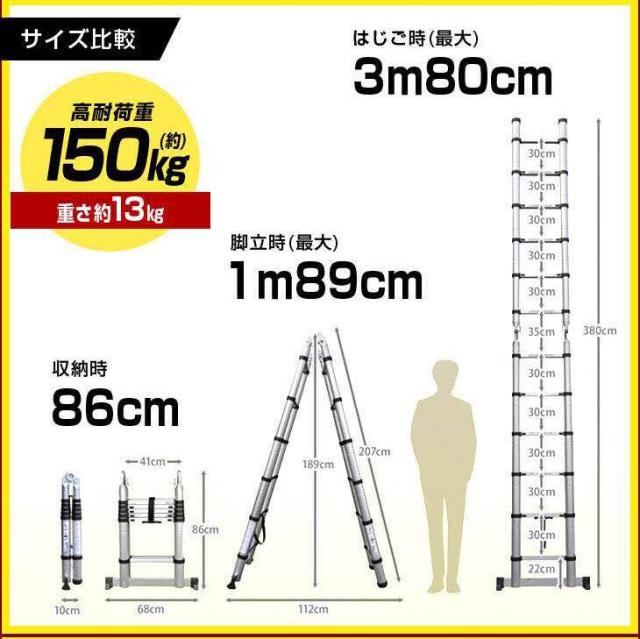 商品特徴:伸縮折りたたみはしご3.8m