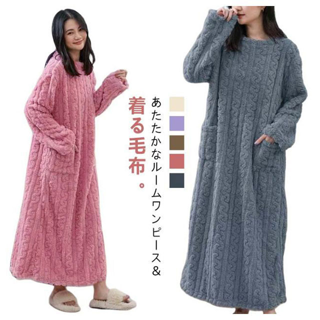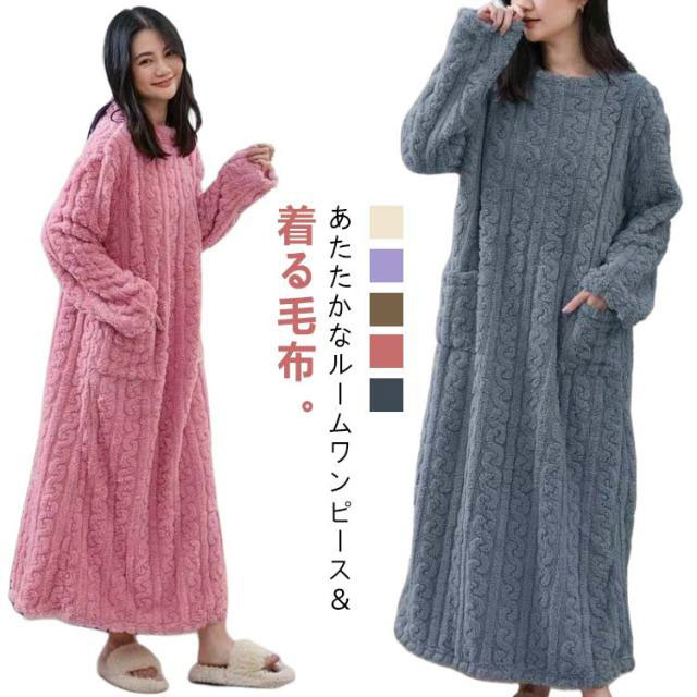 着る毛布 着るブランケット マイクロファイバー レディース 着る毛布 ボア フリース ルームウェア ルームワンピース 長袖 厚手 パジャマ ネグリジェ モコモコ 冬 可愛い ゆったり 部屋着 ポケット付き