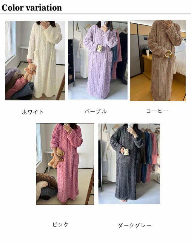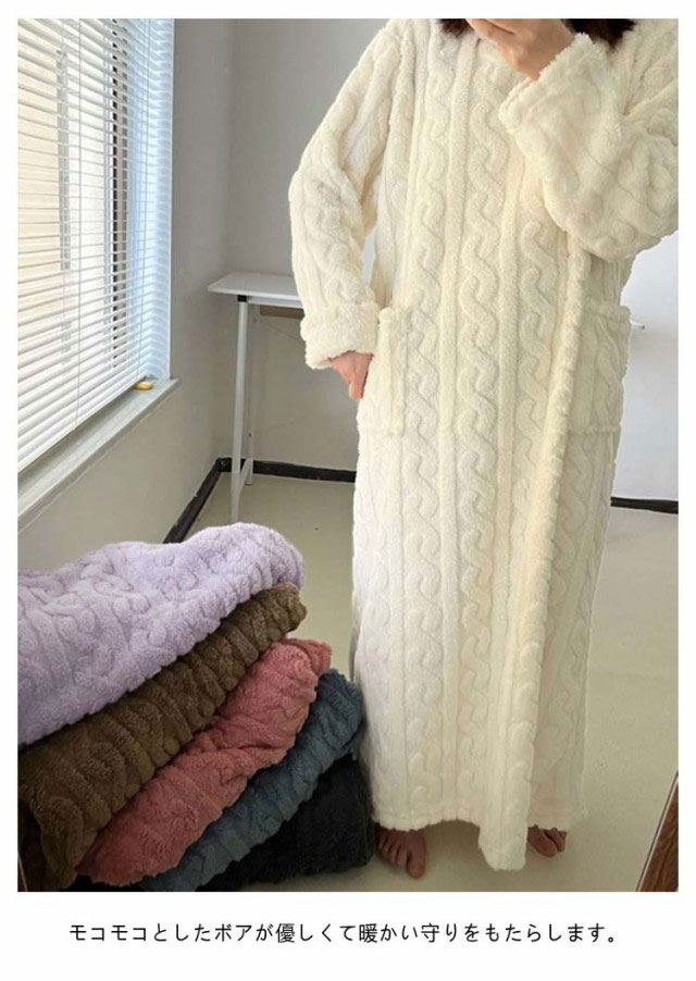| あたたかなルームワンピース&着る毛布。 両サイドポケットも便利。 モコモコとしたボアが優しくて暖かい守りをもたらします。 楽チンな雰囲気の中にも、おしゃれ感があるところがのポイント。 着心地はもちろん、オシャレなデザインにもこだわったレディースにおすすめです。 ご自宅の洗濯機で丸洗いOK! | |