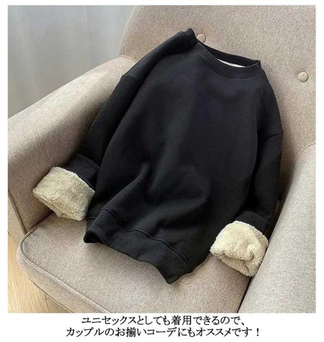 レディース スウェット プルオーバー クルーネック パーカー 春秋冬 裏起毛 ゆったり トップス 無地 長袖 メンズ カジュアル あったか トレーナー 裏ボア 厚手 暖かい 防寒 通勤 通学 部屋着 大きいサイズ 男女兼用