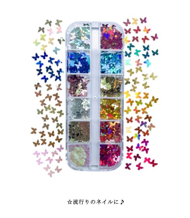 蝶 黒 ちょう ホログラム シルバー ゴールド 高品質ホログラム チョウ ピンク 水玉 白 スパンコール 12種類入り/ボックス付 ドットネイルネイル ネイル バレンタイン セルフ おしゃれ ネイリスト ネイルホログラム シンプルネイル
