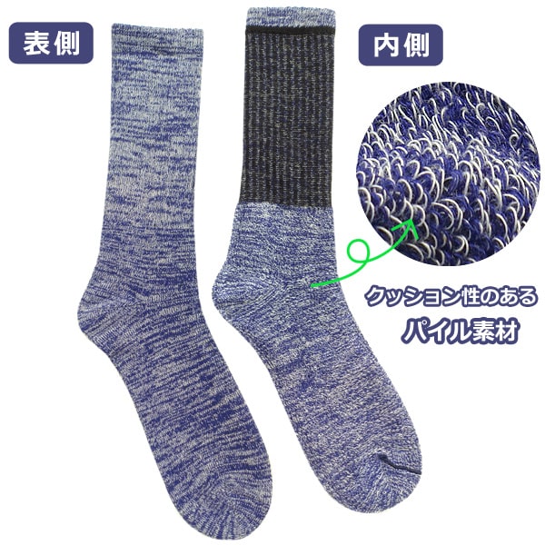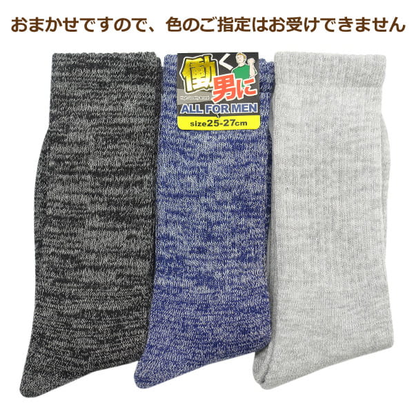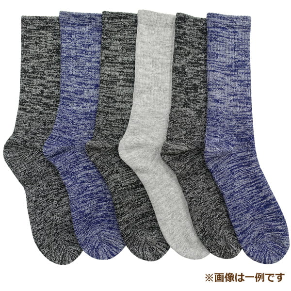 | set1416/メンズ 杢調 綿混 クルー丈 パイルソックス 6足組 25-27cm 色おまかせ |