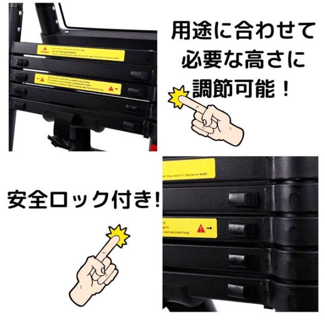 ハシゴ 梯子 はしご 脚立 安全ロック アルミ製 伸縮はしご 伸縮梯子 耐荷重150kg スライド式 折りたたみ