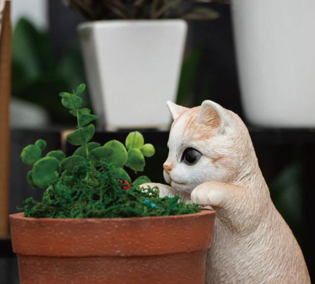 零れ落ちそうなほど、大きな瞳が愛らしい猫のガーデンオーナメントです。今にも動き出しそうなリアルな佇まいはお庭やお部屋に飾るとペットと一緒に暮らしているような気分に浸れます。