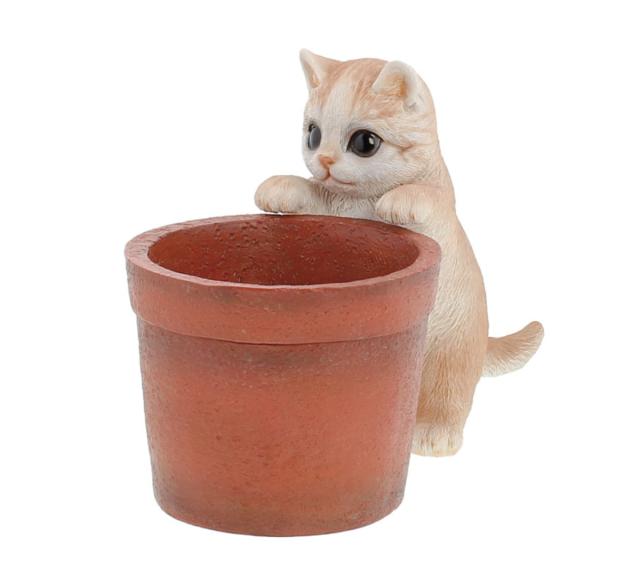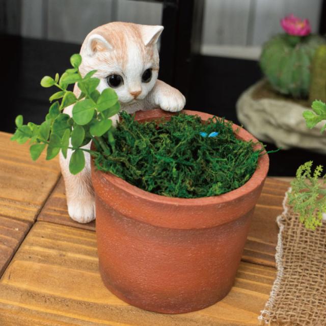 ポリレジン製で雨に濡れても大丈夫です。屋外でも屋内でも使用できてオシャレでかわいいアクセントになります。インテリアやオブジェとして楽しめる大人気のシリーズです。ポットと猫の接続にはマグネットを使用しているので、しっかりと連結できます。