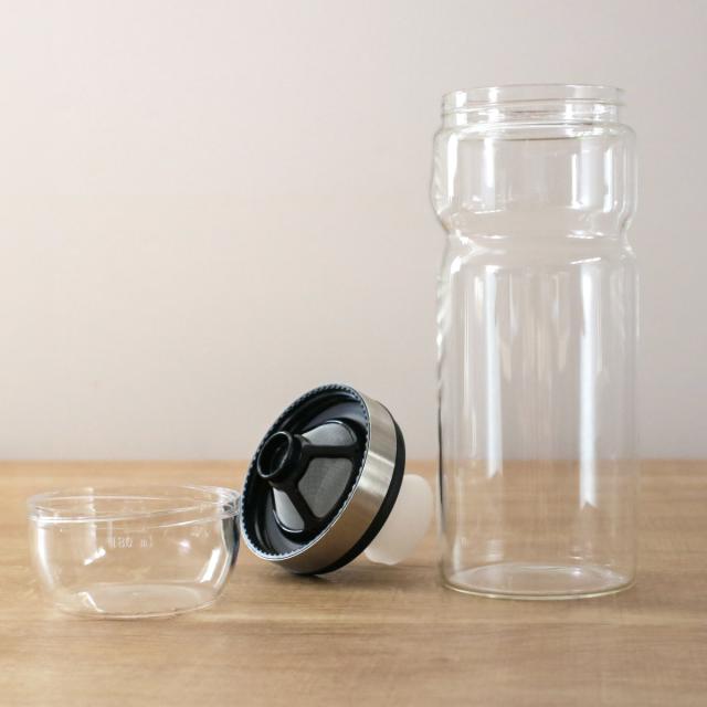 | 材質 | ボトル:耐熱ガラス ストレーナー:パッキン・シリコーンゴム ストレーナーうけ:ABS樹脂・ステンレススチール キャップ:アクリル樹脂 |