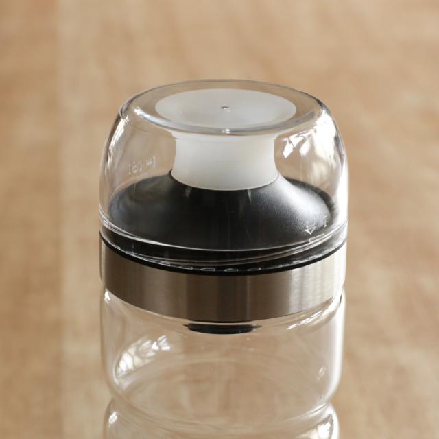 ねじ式のふたを閉めればシリコン製の注ぎ口がぴったと収まるので、しっかり密閉されて漏れにくい構造です。