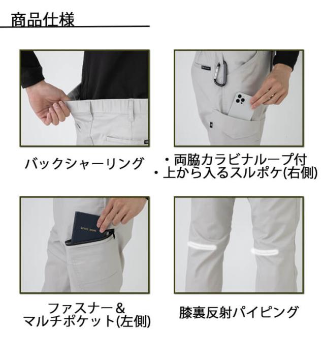 ・反射:反射素材で夜間屋外で働く方の視認性をキープ(膝裏)