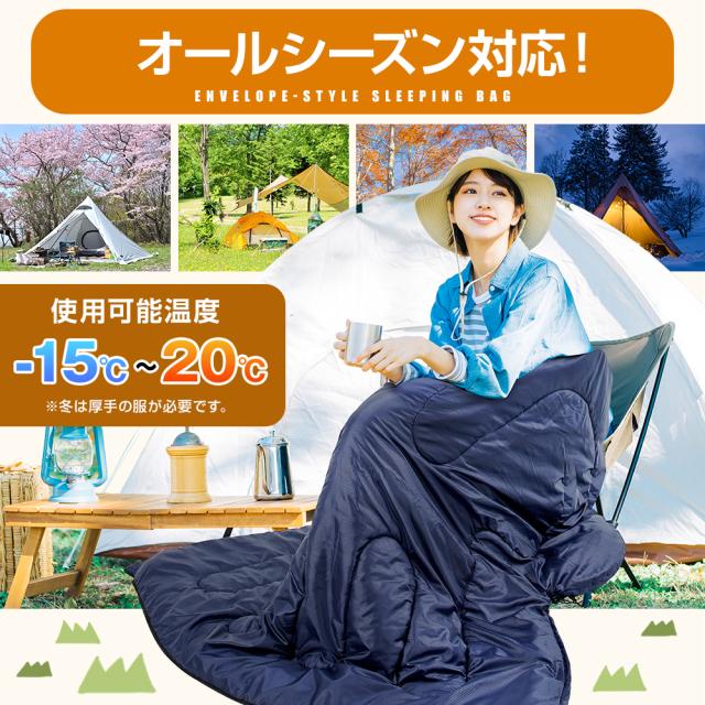 寝袋 シュラフ 車中泊 グッズ 1KG 封筒型 コンパクト 春 夏 秋 キャンプ用品 旅行 ソロキャン 夏用 冬用 軽量 洗える アウトドア フード付